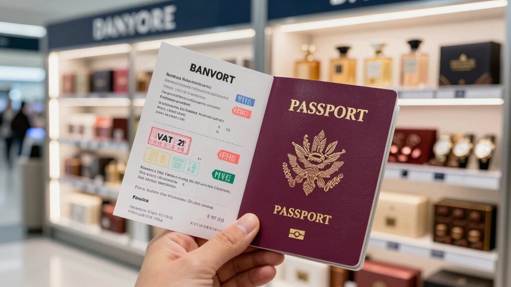 You must meet specific purchase minimums to qualify for a VAT refund as an American visitor. Each country sets its own purchase thresholds, which you need to reach during your shopping trip. Typically, this minimum spending varies but often ranges from €50 to €175, depending on the destination. Keep in mind that only purchases exceeding the minimum spending qualify for a VAT refund. To guarantee you meet the purchase thresholds, ask the retailer for a VAT refund receipt and keep all receipts organized. Remember, if your total spending doesn’t meet the minimum requirement, you won’t be eligible for a VAT refund. Planning your shopping accordingly helps maximize your chances of qualifying and getting money back on your eligible purchases. Additionally, understanding Gold IRA Markets can help you make informed investment decisions beyond your travel plans. Being aware of VAT refund policies can further assist in navigating the process smoothly and ensuring you don’t miss out on potential savings. Familiarizing yourself with retirement planning strategies can also provide long-term financial benefits beyond your immediate travel refunds. Incorporating AI-powered tools can streamline your research and help you stay organized during the process. Staying informed about content quality and topical authority can also enhance your understanding of how to optimize your overall financial and travel strategies.