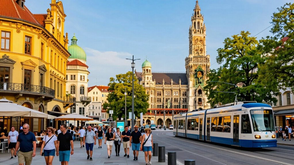 Public transportation in Munich is like a well-oiled machine—safe and reliable for tourists. You’ll find local transit safety is exemplary, and tourist security measures are thorough, making it easy to navigate the city confidently. Keep an eye on your belongings, especially in crowded areas, but overall, you can enjoy Munich’s transit system without worries. Just stay alert, and you’ll find traveling around Munich a breeze.