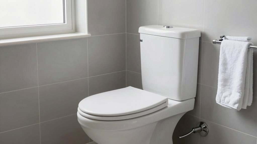 You’ll spot the correct flush option on dual-flush toilets instantly—look for the tiny, often color-coded buttons or levers that seem to hold the secret to saving the planet. The small button or half-sized flush is for liquids, while the larger one is for solids. Sometimes, the buttons are side-by-side or stacked; just press lightly, and you’re good to go. Remember, conserving water starts with your finger!