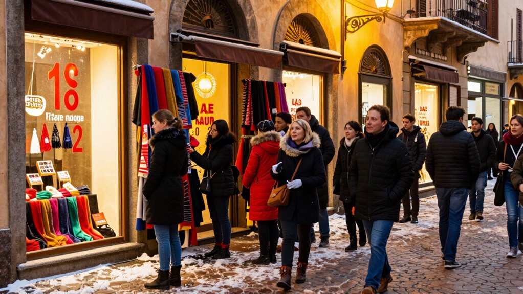 You’ll notice regional differences in Italy’s sales regulations. Each region sets its own start date, mostly beginning on January 4th, but Valle d’Aosta starts on January 2nd, and Alto Adige on January 8th. Duration varies, from six weeks to two months, and specific rules like price display and end dates depend on regional authorities. This regional variation means you might find some areas starting earlier or lasting longer, giving you more shopping flexibility.