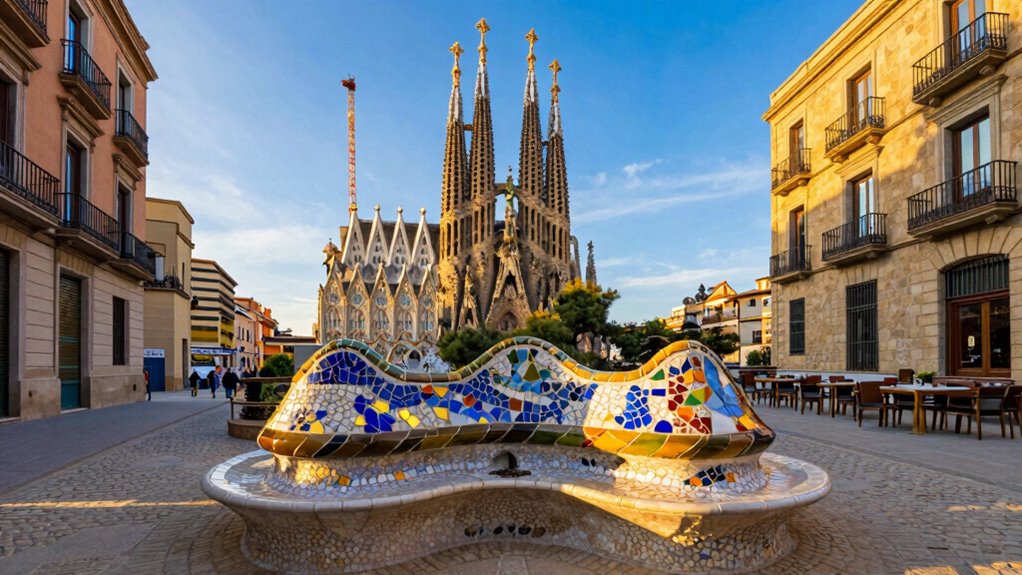 As you explore Park Güell, you’ll notice its stunning architectural marvels seamlessly blend with the natural landscape. From the colorful mosaics to the whimsical structures, the artistry is truly enchanting. Make sure to plan your visit wisely to enjoy the best views and avoid crowds.