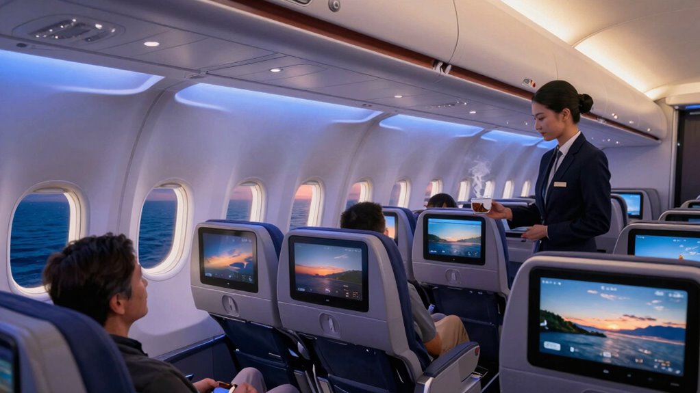Additionally, move and stretch every 60–90 minutes to boost circulation and reduce discomfort. Opt for light, fiber-rich meals to minimize gastrointestinal issues. These simple actions can help you arrive feeling refreshed and ready to adjust quickly.