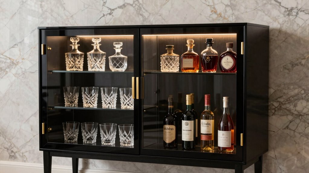 I’ve found that customizable bar cabinets are a game-changer for different drink collections. I can add adjustable shelves, special compartments, and even modular units to fit everything perfectly. It’s like creating a personalized masterpiece that showcases my favorite spirits and glassware. This flexibility makes my space feel uniquely mine, and I love how it adapts as my collection grows or changes.