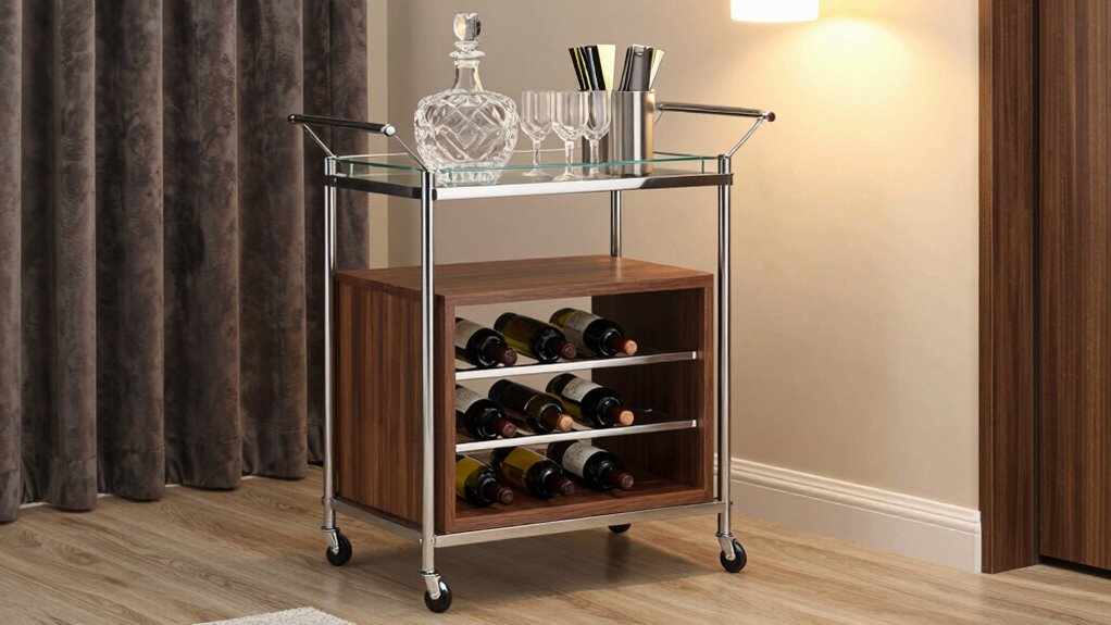 Did you know that nearly 60% of parents worry about their kids accessing dangerous items at home? I always look for bar carts with safety features like child locks or rounded edges for peace of mind. Many models include secure storage compartments and safety glass to prevent accidents. I recommend choosing a cart with these features to keep children and pets safe while still enjoying your entertaining space.