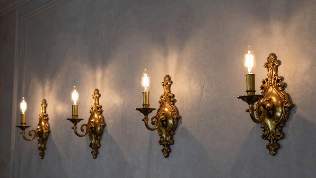 Choosing brass wall sconces that align with Parisian decor means paying attention to their style details and finishes. Opt for vintage or antique finishes to enhance the timeless elegance of Parisian interiors. Look for sconces with ornate or intricate detailing, like scrollwork or crown motifs, which echo classic Paris aesthetics. Soft, warm lighting options are essential to create the cozy, romantic ambiance typical of Parisian spaces. Adjustable arms or shades add versatility, allowing you to customize lighting angles and layer your decor effectively. It’s also important that the sconce’s style harmonizes with other vintage or Baroque elements in the room, ensuring a cohesive and authentic Paris-inspired look. These considerations help your lighting complement and elevate your overall decor.