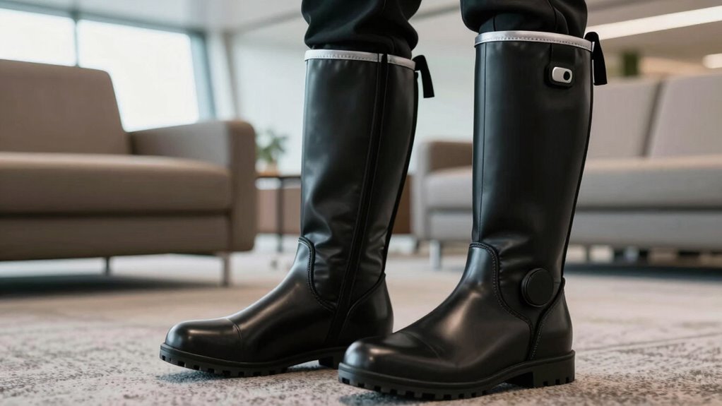 Compression boots aren’t suitable for everyone. I recommend checking with your healthcare provider if you have circulation issues, heart problems, or blood clots, as they could worsen with compression therapy. For healthy individuals, they’re generally safe and can aid recovery. But I always advise listening to your body and stopping use if you feel discomfort. When in doubt, professional guidance guarantees you’re using them safely.