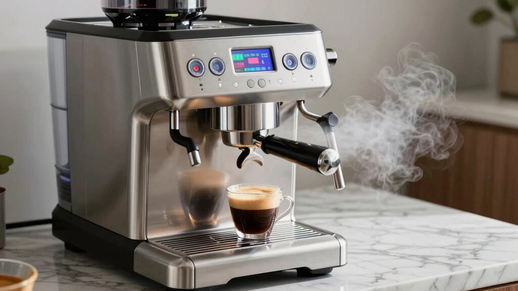 If you’re looking for the 15 best espresso machines with powerful steam wands for 2026, I’ve got you covered. These machines feature high-quality pumps, robust steam wands, and user-friendly controls to help you craft barista-level microfoam and rich espresso at home. They include versatile features like built-in grinders, LED displays, and quick preheating. Keep exploring, and you’ll discover all the key details that can help you choose the perfect machine for your needs.