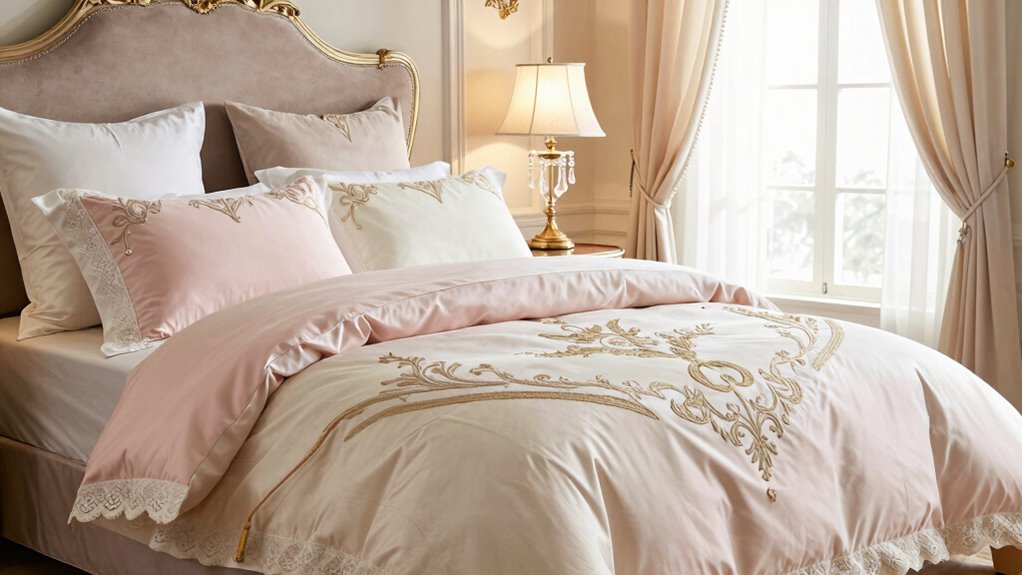 Choosing the perfect European-style bedding is like tending a beautiful garden; each element, from the linens to the textures, helps your bedroom bloom into a sanctuary. When you select the right set, you’re nurturing comfort and elegance, allowing your space to flourish. Remember, the right bedding isn’t just about style—it’s about creating a haven where you can relax and grow. Elevate your bedroom, and let your personal sanctuary thrive.