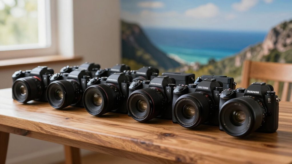If you’re heading outdoors, I recommend cameras like the Sony A7R V and Canon R5, as they have excellent weather sealing that keeps out dust and moisture. The Nikon Z7 II also offers solid protection, perfect for rugged adventures. I personally find these models reliable in tough conditions, ensuring I can shoot confidently without worrying about the weather. They’re my top picks for outdoor photography.