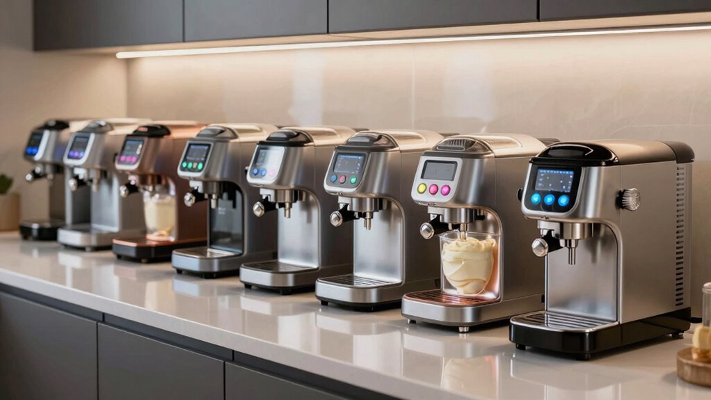 Selecting a gelato maker that’s easy to operate can make the entire process more enjoyable and less frustrating. I look for machines with straightforward control panels and minimal steps, so I don’t waste time figuring out complicated menus. Automatic features like pre-freezing and auto shutoff really simplify things, especially when I want quick results without extra effort. Clear instructions and intuitive designs boost my confidence, even if I’m a beginner. Lightweight and compact models are much easier to handle, clean, and store, which makes the whole experience more convenient. Features like one-touch churning, preset programs, and removable parts also contribute to a user-friendly experience, helping me make gelato effortlessly and enjoyably without hassle or confusion.