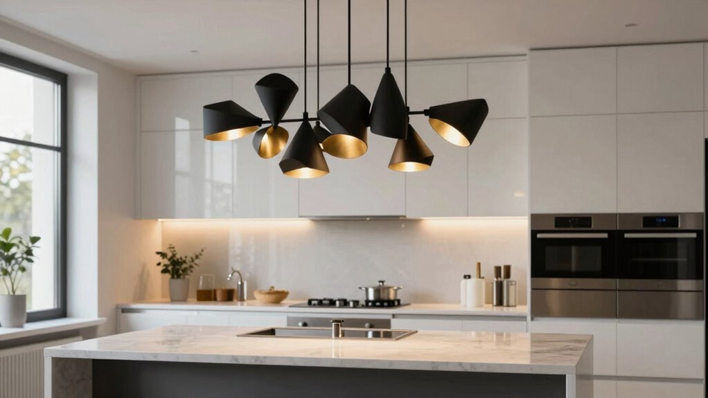 If you’re looking for the 15 best modern chandeliers to bring a European vibe to your kitchen in 2026, I’ve got you covered. I’ve curated options that blend elegant finishes, versatile styles, and perfect sizes to match different spaces. From geometric designs to crystal accents, these fixtures are both stylish and functional. Keep exploring further, and you’ll discover specific details on how to choose the right piece to elevate your kitchen’s aesthetic.