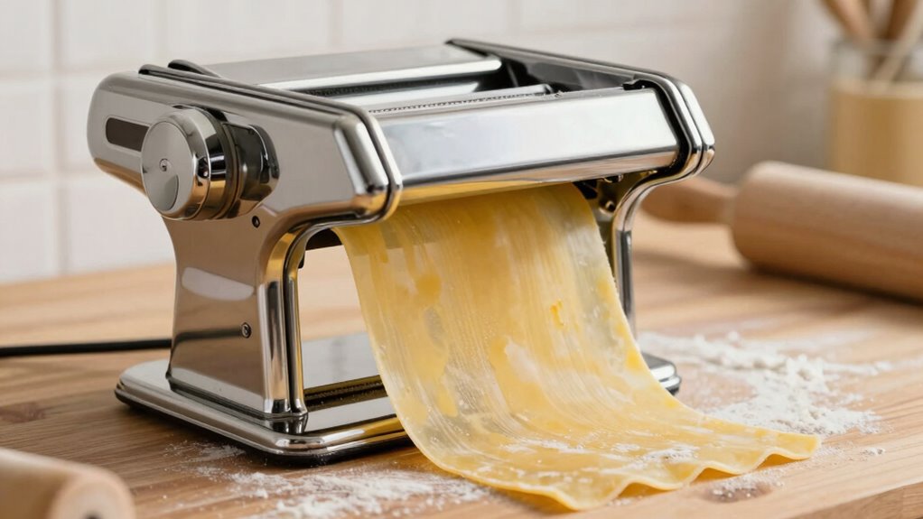 Yes, these pasta makers can produce consistent thickness for lasagna sheets. I’ve found that adjusting the settings precisely and running the dough through multiple times helps attain uniformity. Regularly cleaning and maintaining the rollers also guarantees smooth operation. With a bit of practice, I can get perfectly even sheets every time, making my lasagna look professional and delicious. Consistency is definitely achievable with the right technique and care.