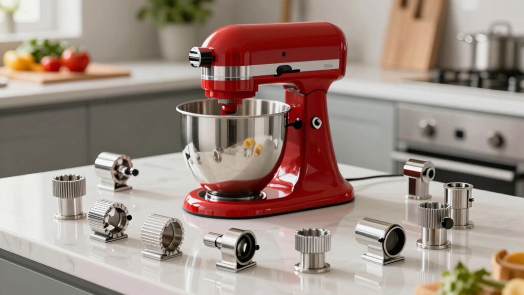 If you’re looking for the best pasta roller attachments for your stand mixer in 2026, I’ve found top options that suit various needs and budgets. From versatile 3-in-1 sets to highly adjustable rollers, these attachments are compatible with popular brands like KitchenAid and HOZODO. They offer durable materials, easy maintenance, and multiple functions for making everything from spaghetti to ravioli. Keep exploring, and you’ll discover even more tips to pick the perfect pasta maker for you.