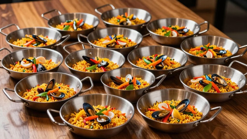 Choosing the right large stainless steel paella pan is like finding the perfect canvas for your culinary masterpiece. With options spanning from 12 to 20 inches, you’ll craft flavorful, vibrant dishes that bring friends and family together. So, pick the one that fits your kitchen’s rhythm, and let your cooking shine as bright as a summer sun setting over a lively fiesta. Your perfect paella awaits—time to make it happen!